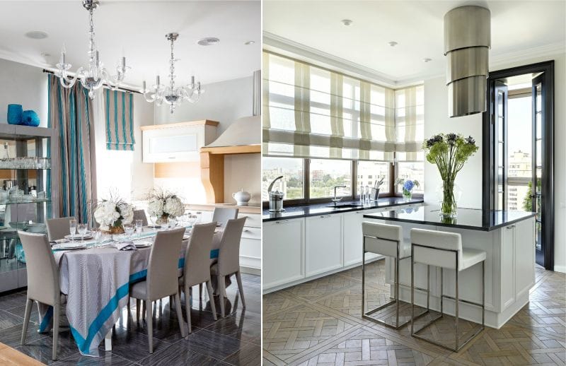 Спальня, которая является зоной расслабления и отдыха, не должна пестрить яркими оттенками. Приятный зеленый цвет, кремово-серый, глубокий синий идеально подойдут для портьер. В гостиной можно использовать легкий тюль и яркие гардины. На кухне будут уместны и трехцветные шторы в клетку, и минималистические «холодные» портьеры и светлые занавеси с цветочным принтом.